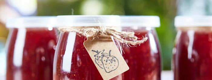 - Jams take fruit flavor to the next level. They’re made from actual pieces of the fruit itself, so their texture and consistency is different than jellies, which are made from fruit juice and sugar alone. For a fresh-from-the-farm burst of fruit flavor, try our Strawberry Jam or Peach Jam the next time your alarm clock calls.