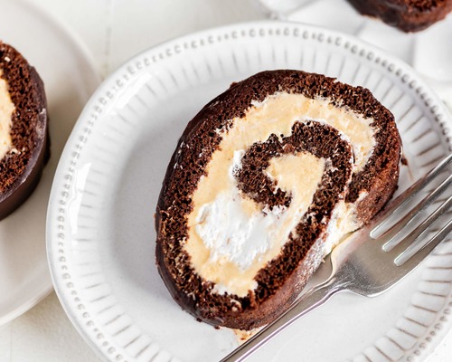 “Line your jelly roll pan with parchment paper and spray it heavily with a flour-based cooking spray. The cake is done baking if it springs back when pressed on.