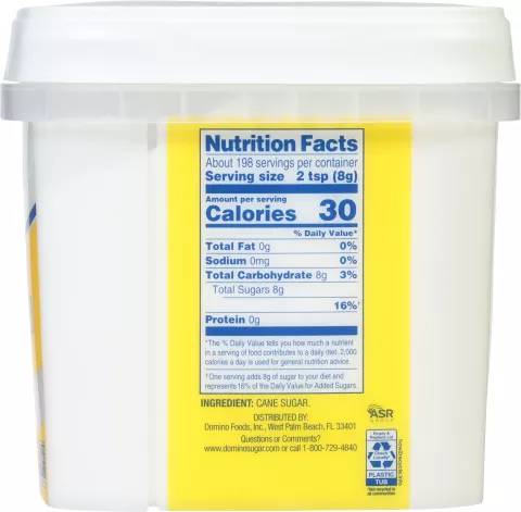 Since 1901, Domino:registered: Sugar has maintained a commitment to quality, a passion for craftsmanship, and a dedication to sweetening the lives of countless bakers. Our Easy Baking Tub will make your baking more convenient. It's also lighter and easier to transport, so it requires 65% less freight/transportation than the old round canisters! Domino:registered: Granulated Sugar is scoopable directly from the tub which clicks closed for confident resealing. Plus, the rectangular tub is easy to store!