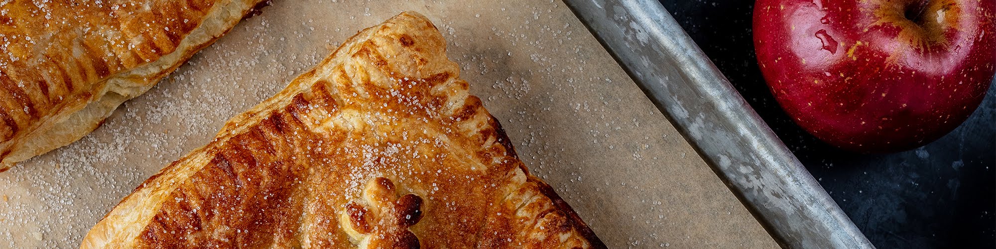 Transfer to prepared pans and brush turnover with egg wash. Sprinkle with sugar. Make three slits to the turnover to allow steam release. Bake for 20 minutes or until golden brown. Serve hot or at room temperature.