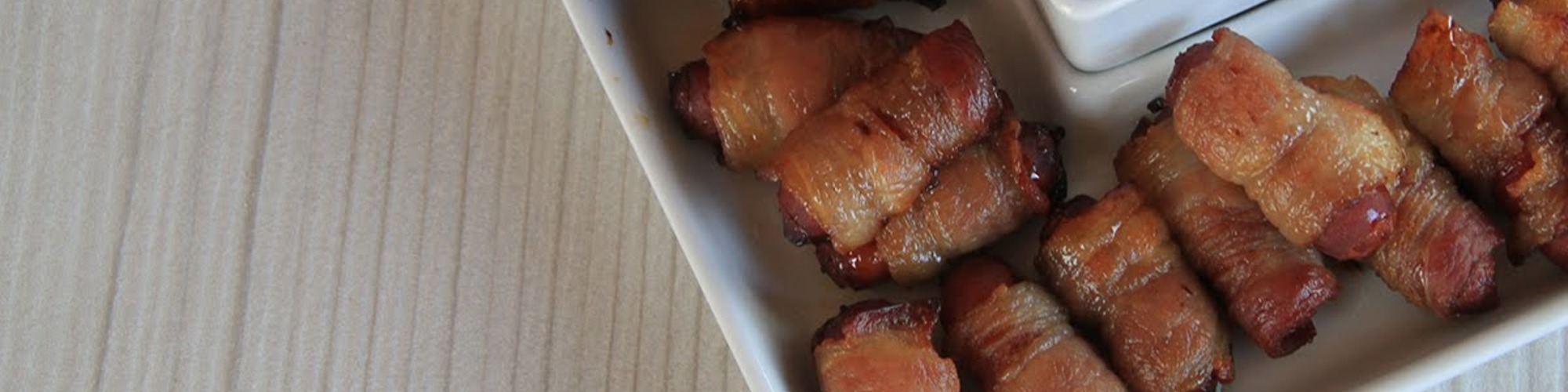 Cut bacon into three 3-inch sections. Peel apart one section of the bacon at a time and soak the pieces in the apple juice/sugar mixture.