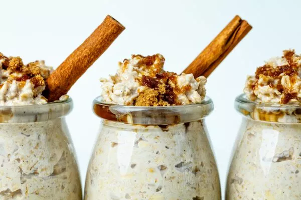 Spoon oats evenly into four serving jars. Garnish with brown sugar and a cinnamon stick.