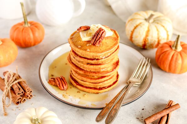 Prep Time : 10 minutes / Cook Time : 4-5 minutes per pancake / Yields: 12 pancakes and 1/2 cup syrup