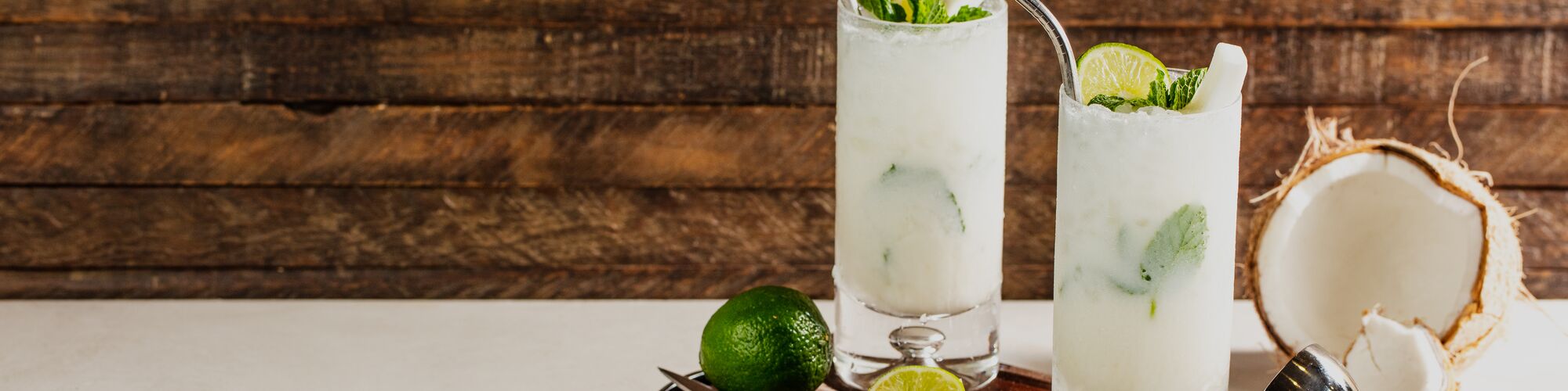 Creamy, white coconut milk joins with Domino® Golden Sugar and your favorite rum in this sweet, summery cocktail. Fresh mint and a squeeze of lime brighten its flavor like the shining sun overhead.
