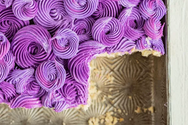Pour the cake batter into the prepared 9" x 13" cake pan and bake for 35-40 minutes at 350°F or until an inserted toothpick in the center of the sheet cake comes out clean.