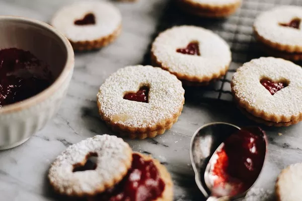 Turn all the bottom cookies upside down. Layout all the tops (with centers cut out) and dust lightly with Domino® Powdered Sugar. Spread 1/2 tablespoon of cooled jam on the bottoms and carefully sandwich them with the tops.