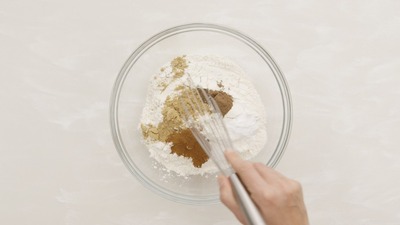 In a large bowl, whisk together flour, cinnamon, ginger, allspice, baking soda and salt. Set aside.