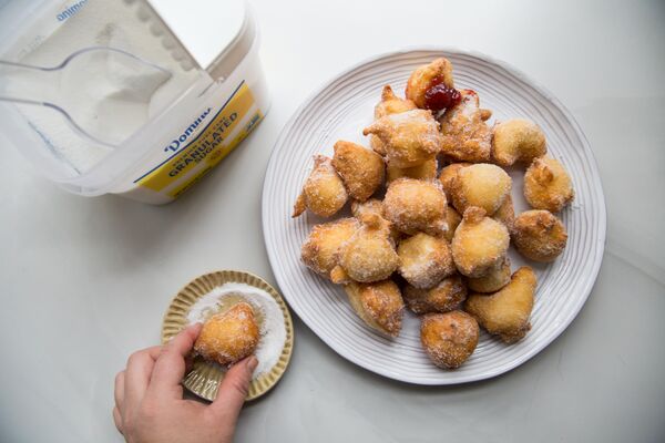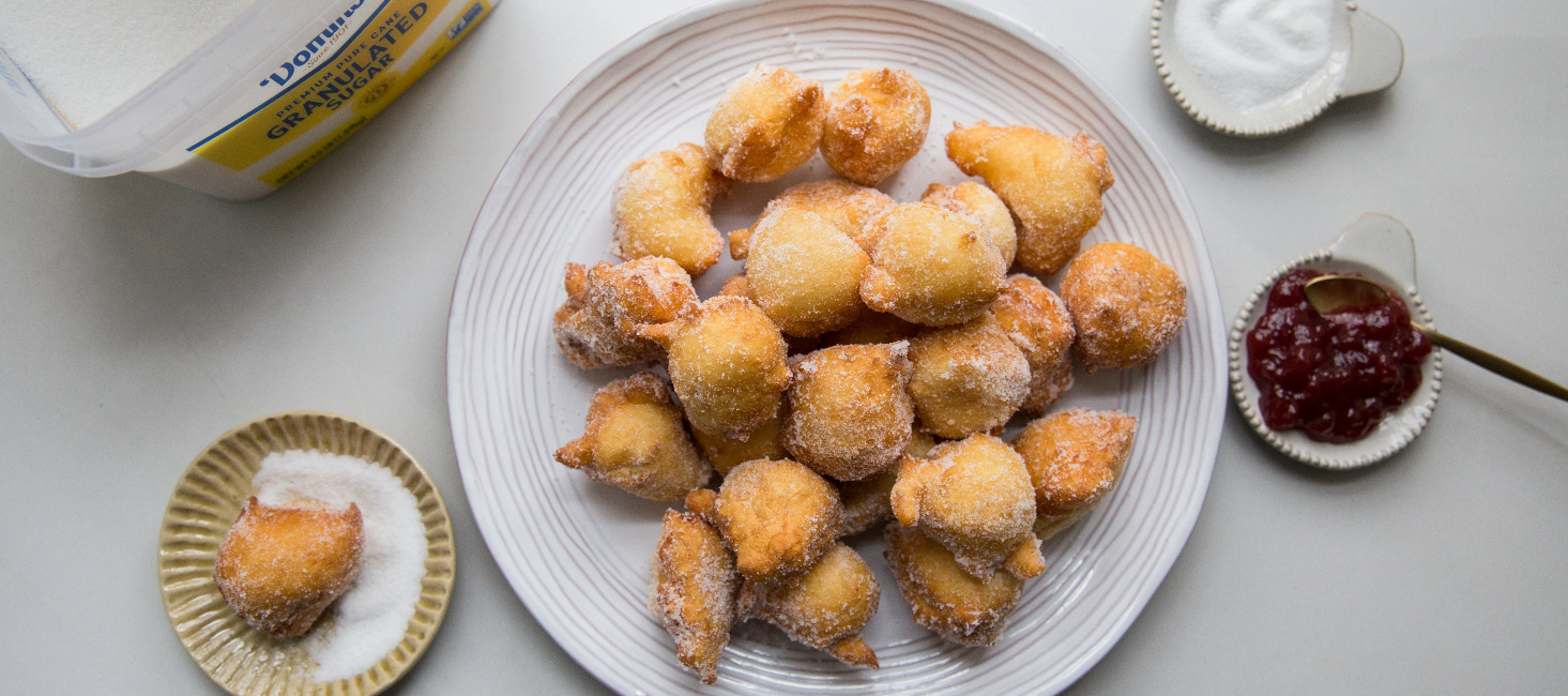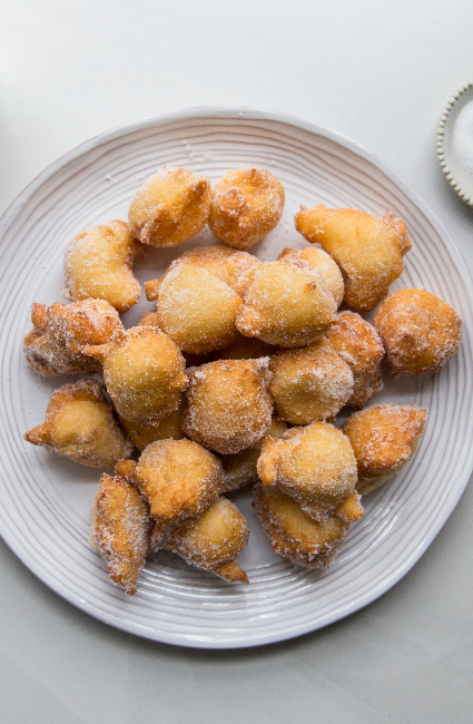 Using a cookie scoop or 2 spoons, drop small balls of batter into the oil, taking care not to overcrowd the pot.