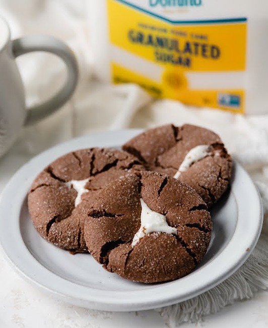 Use a medium cookie scoop to portion the dough. Use your thumb to make an indentation in each ball, then stuff with half of a marshmallow. Roll the dough balls in your hands until the marshmallow is almost fully covered with dough. Finish by rolling each ball in additional Domino® Granulated Sugar until fully coated and place on the baking sheet at least 2 inches apart.