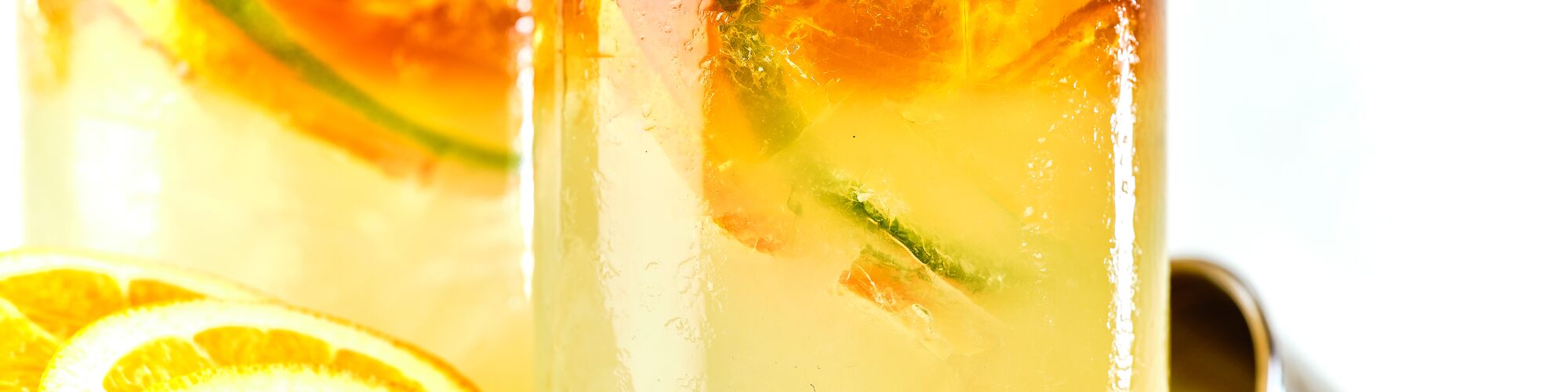• Lime slices, orange slices, cherries, mint leaves as garnish