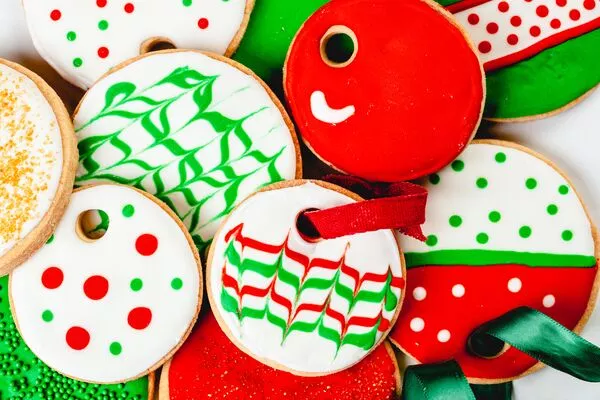 If you do not have an ornament shaped cookie cutter, use a round cookie cutter and cut a small hole at the top using a straw.