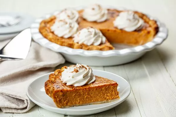Serve the pie cold or at room temperature. Prepare freshly whipped cream to serve. Sprinkle some ground cinnamon or freshly grated nutmeg over the cream as garnish.