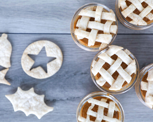 On a surface dusted with powdered sugar, roll dough to 1/4-inch thickness. Using a mini pumpkin-shaped cookie cutter, cut out 8 pumpkin shapes and place on prepared baking sheet. Bake 10 minutes, watching carefully not to burn edges. Set aside and cool completely. Top each pie jar with one pumpkin to decorate.