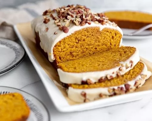This pumpkin pound cake from blogger From Scratch Fast is everything we love about fall baking. A touch of almond flour helps give this cake a moist, rich texture, and an irresistible bourbon cream cheese glaze takes it over the top!