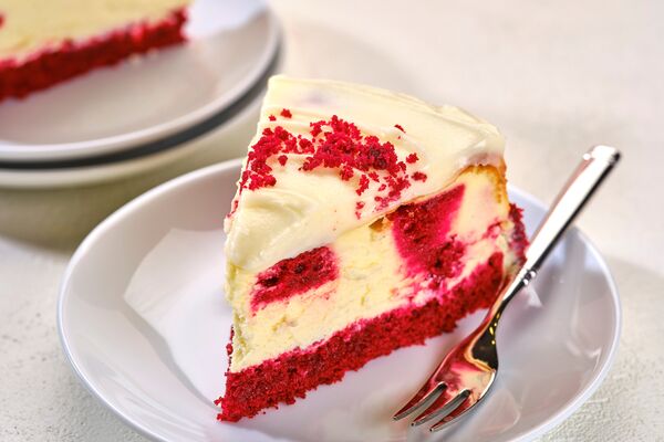 Prepare the red velvet cake. Preheat oven to 350°F. Grease and flour one 9-inch round cake pan.