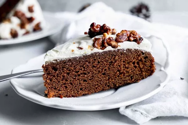 Sprinkle the top of the cake with candied walnuts if desired. Serve!