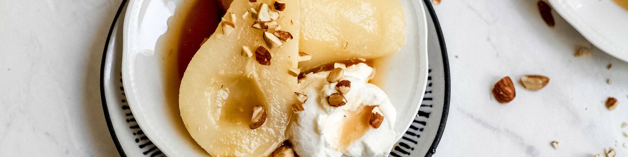 Serve the pears at room temperature with lightly whipped cream, the thickened syrup from the juices, and a sprinkle of toasted chopped nuts (optional).