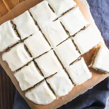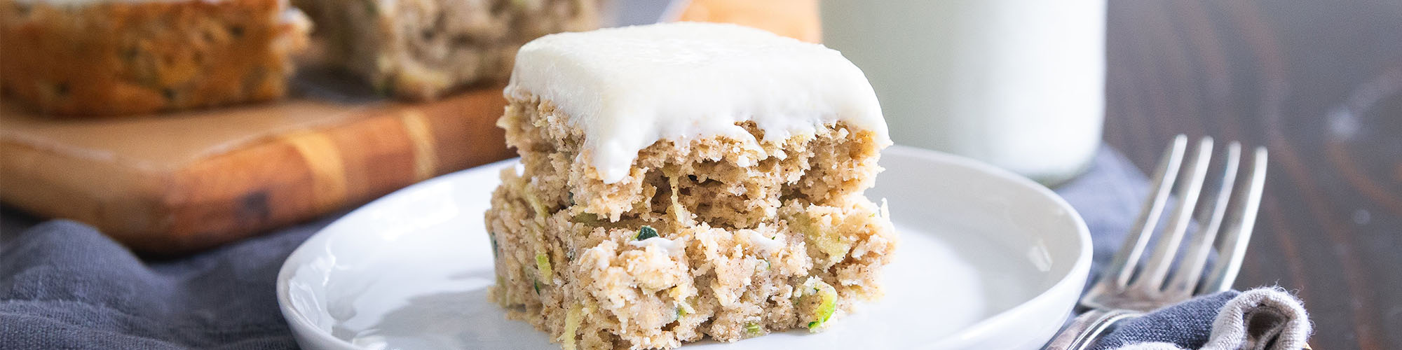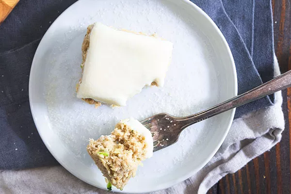 From blogger Running to the Kitchen. these zucchini bars use gluten-free ingredients, a less processed sugar, and less oil than the classic recipe with a lighter cream cheese icing.